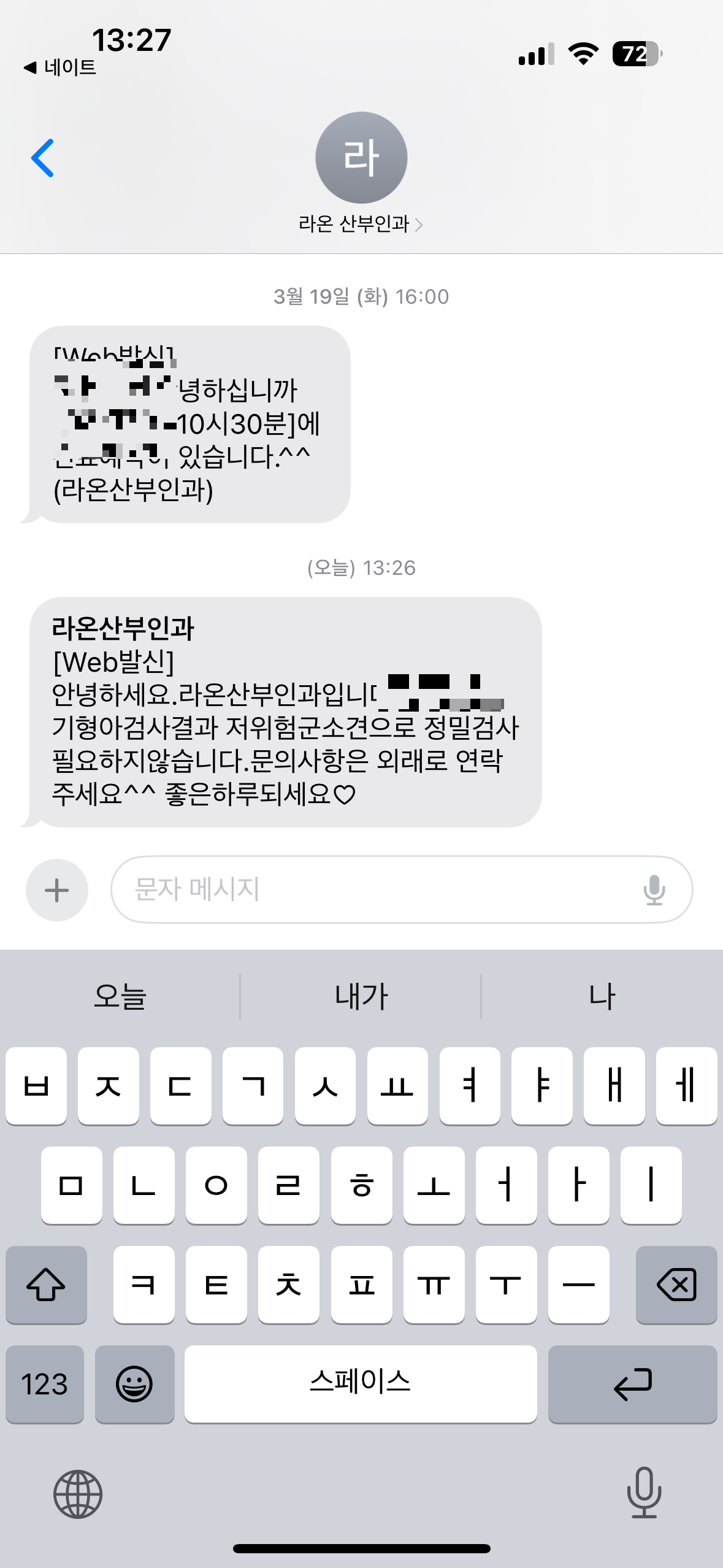 12주, 16주에 받았던 혈액검사(기형아 검사) 결과가 문자로 옵니다!!!